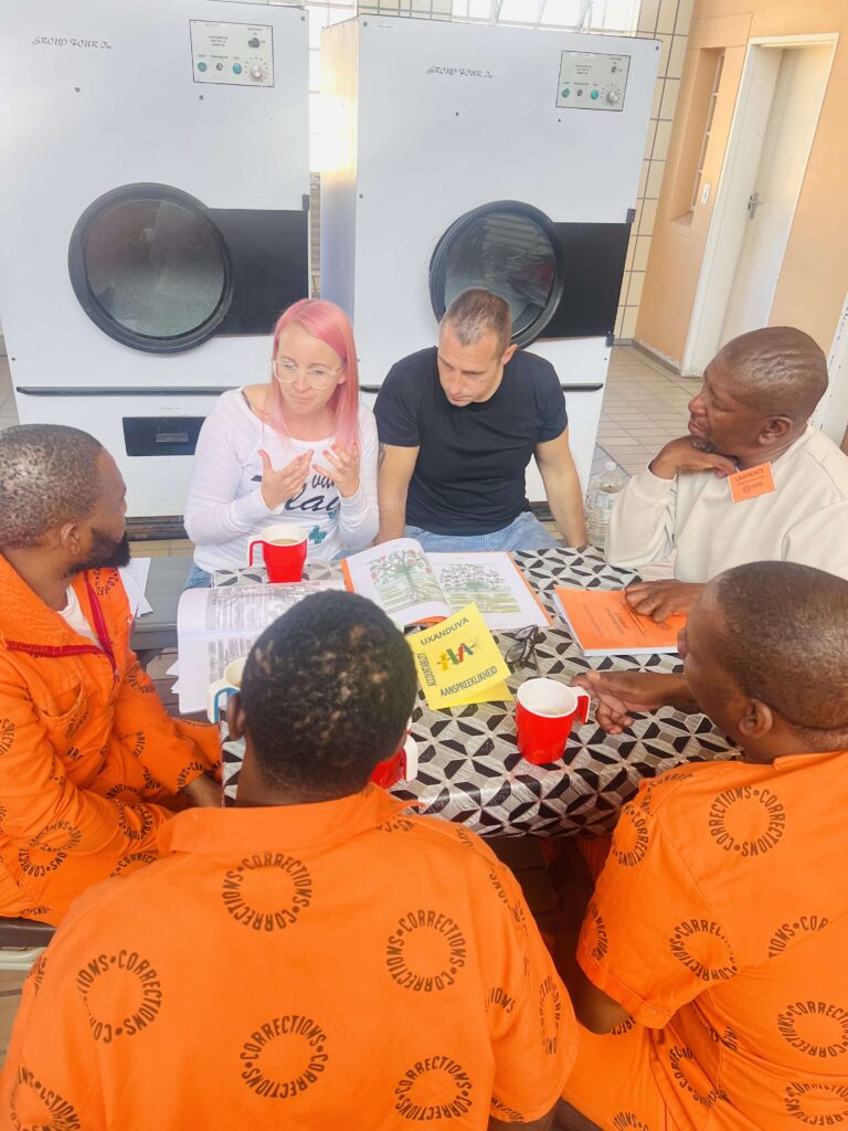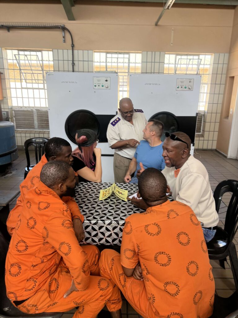 Unser Team hatte das große Privileg, an einem Restorative Justice Kurs in einem Gefängnis in Südafrika teilzunehmen. Von Montag bis Samstag verbrachten wir täglich Zeit mit rund 30 ausgewählten inhaftierten Männern sowie einem nationalen und internationalen Team von etwa 25 bis 30 Ehrenamtlichen.